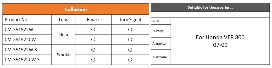 Fitment for | For Honda VFR 800 07-09 | ||||||