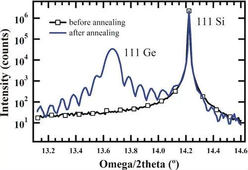 Comparison of X-ray diffraction as-deposited and crystalized Ge on Si