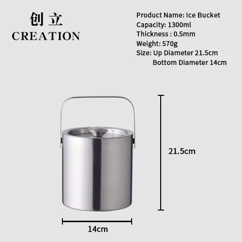 1.3Lml Stainless Steel Double Wall Ice Bucket With Ice Tong