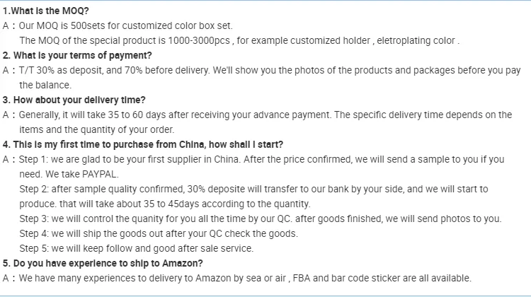 We adhere to the spirit of "quality and lead time first".We value all our customers and look forwarder to your interest in our product range.