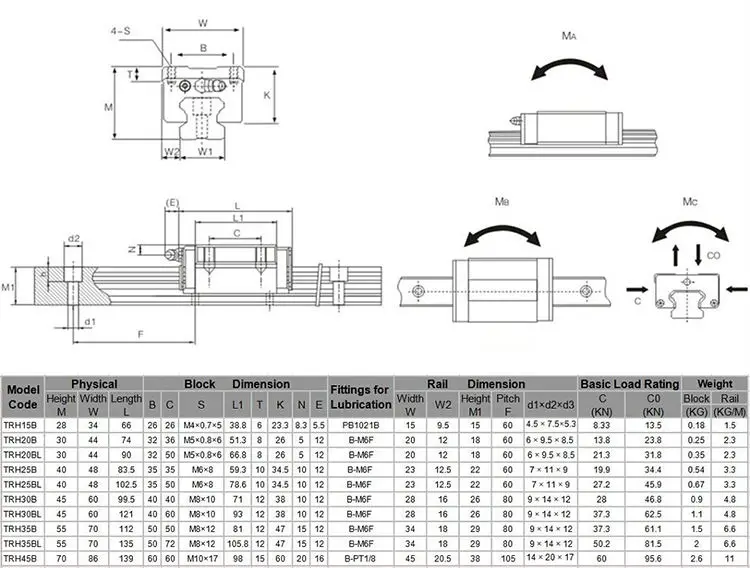 •Specifications of CHTR Linear Guide with B/BL Pillow Blocks