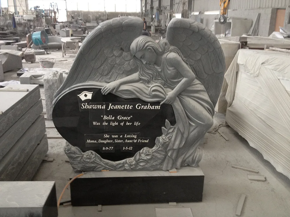 Black Granite Engraving Upright White Angel Wings Headstones Cemetery with Heart | ||||||