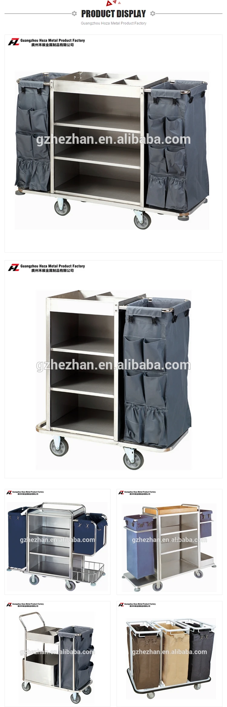 Guangzhou Hoza Metal Product Factory Guangzhou Huangze Hotel Article Co.,Ltd. Hoza was established in 1984, has been a dedicated stainless-steel manufacturer for over 30 years. The corporate philosophy is always hews to high-quality, sincerity and complete services. Such has turned HZ into a well-known industry in Guangzhou. Hoza holds 3 production workshop . One is aims at outputting stainless-steel products, including luggage rack ,umbrella stands, ashtrays, and display stands and so on . The order one is mainly responsible for churning out relatively large-sized items, such as trash bins, work tables, utility carts etc.Third workshop is focus on doing the wood item such us baby cot wooden bin ,podium and so on HOZA has always endeavored for perfection by purchasing the most advanced equipment and by keeping a highly skilled and experienced workforce, with one definite goal-to achieve the possible highest quality. In addition, HOZA provides OEM and ODM services to meet customer''s needs. For years, HOZA has been exporting its products to other countries, winning international trust and support.