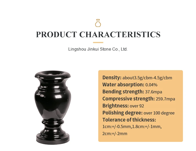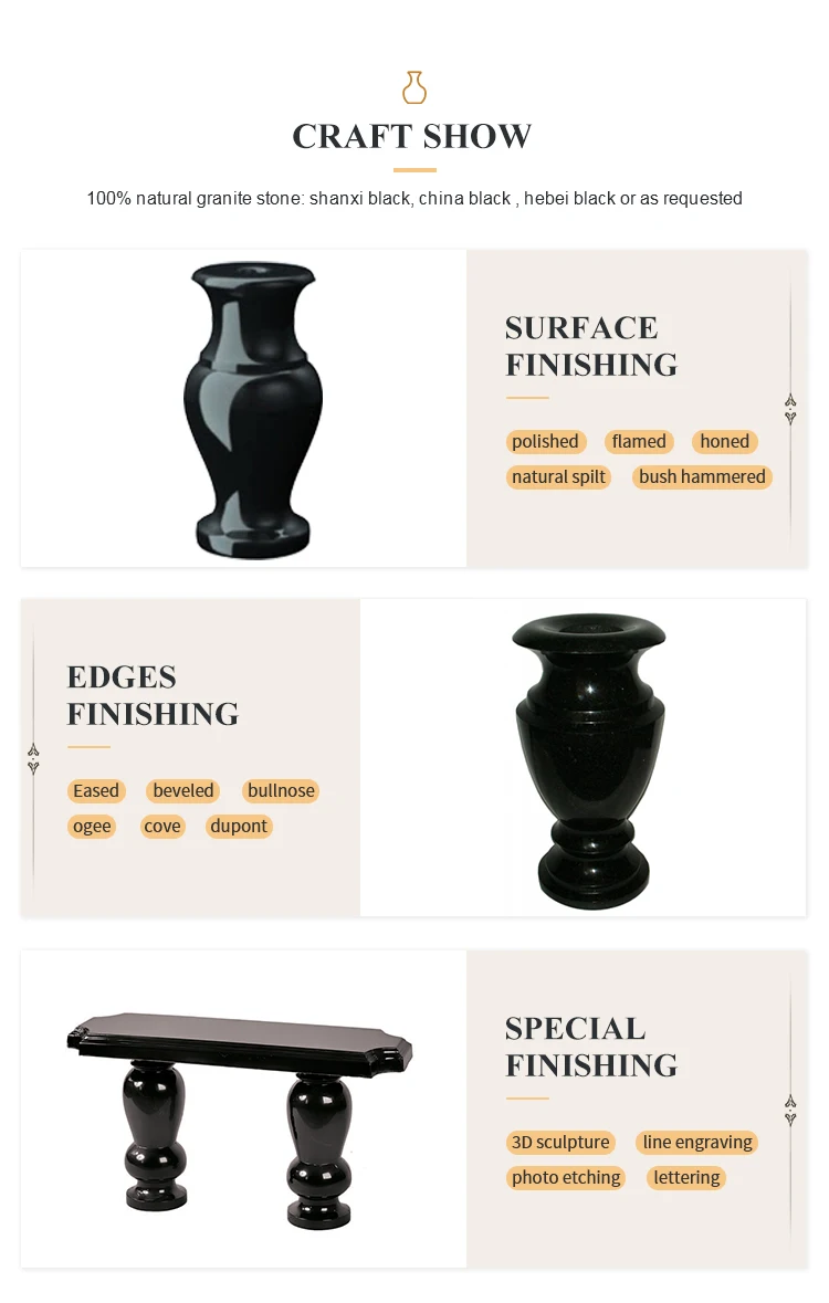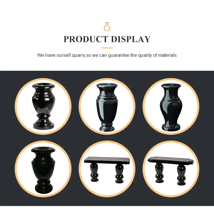 Cemetery usage black granite polished flower vases for headstones
