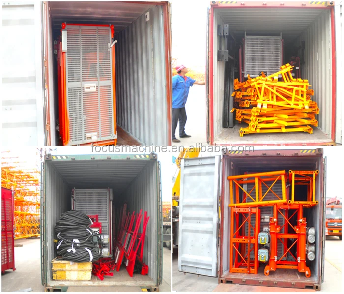 Mast section can be divided into three specifications as follows: 650x650x1508, 800x800x1508 and 960x650x1508, driving mode: SCD dual drive, counter weight, no counter weight of SC triple drive, built-in, upper-setting and frequency control etc. FOCUS hoists for construction are applicable to bridges, chimneys, buildings and many other projects. hoists for construction