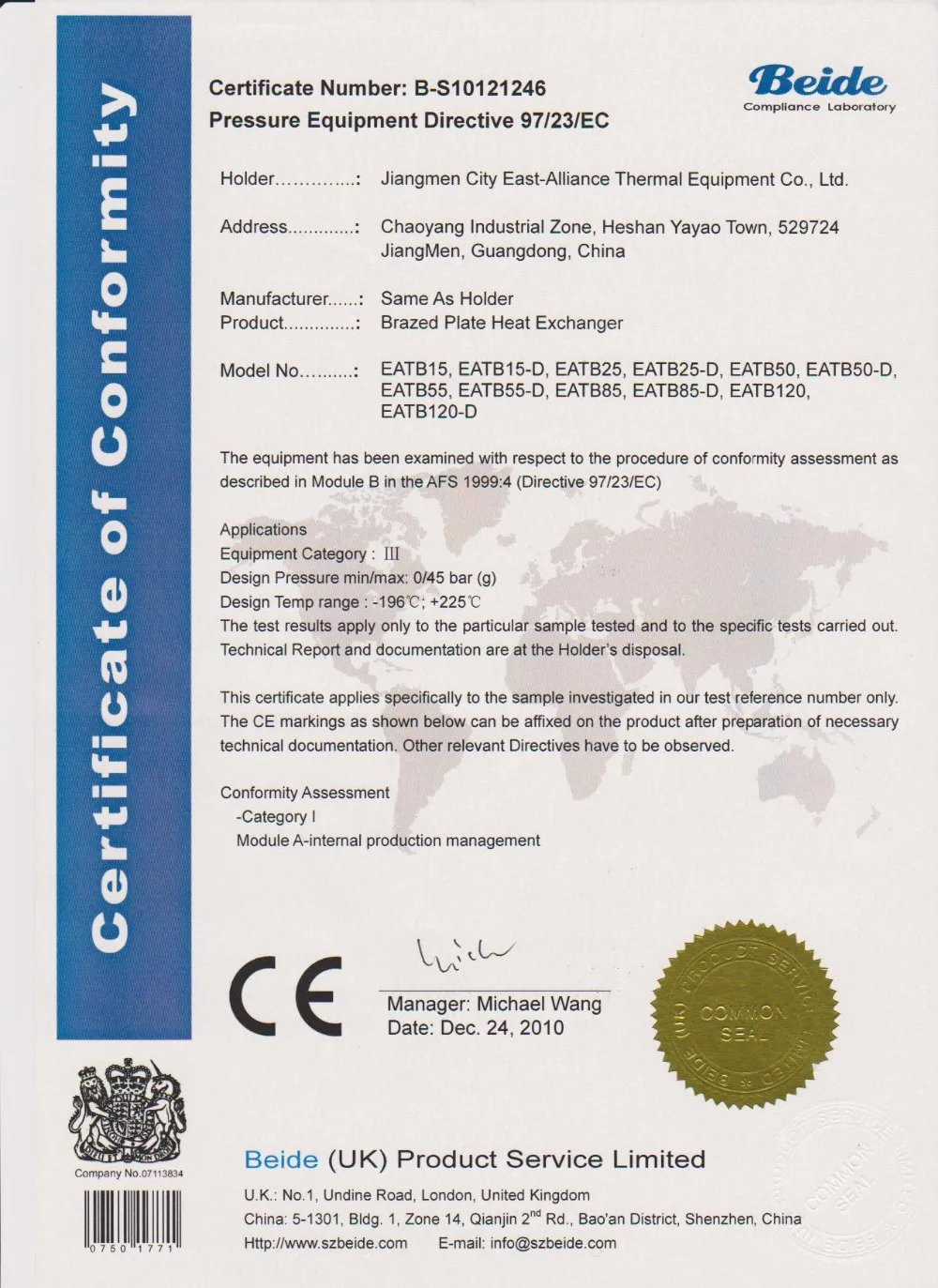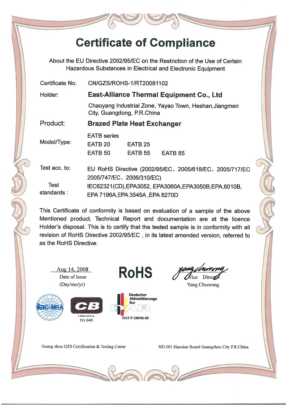 East-Alliance Thermal Equipment Co.,Ltd, a HK-funded enterprise located in Chaoyang Industrial Zone of Jiangmen City in Guangdong Province,China,belong to Guangdong DongXu Group. The Company has been specializing in brazed plate heat exchangers manufacture and sales, which are widely applied to the fields involved in cooling, heating, oil pressure, vessel, electric power, paper making, metallurgy.etc.