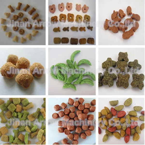 With the increasing variety of pet,people require more and more different pet foods.In order to meet various feeding demands,our company developed this line,easy operation,friendly human-machine interface,accurate control to ensure the food can be processed under stable temperature,humidity and other circumstance.This line mainly use the meat meal,fish meal,bone powder,corn powder,soya meal and other grains' powder as main materials to produce the innovative shapes,high nutritional and savory taste pet food for dog,cat,fox,bird etc and also floating or sinking aquatic feed for fish or shrimp etc.