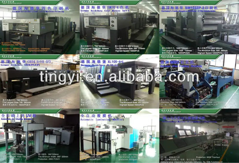 | Material | Art paper(128gram, 157gram, 200gram, 250gram, 300gram) Kraft paper(100gram, 120gram, 150gram, 200gram, 250gram,300gram) Ivory board(250gram, 300gram, 350gram) Duplex board with grey back(250gsm, 300gsm, 350gsm, 400gsm) |
