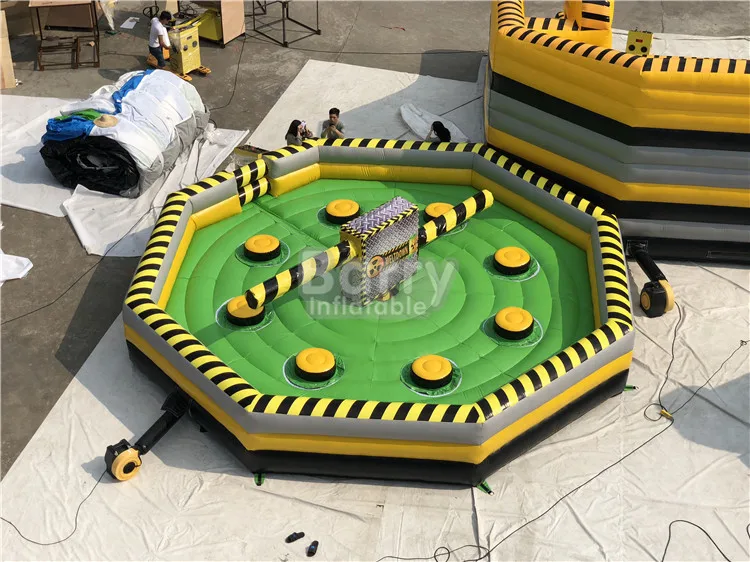 Wipe-out / Last Man Standing The last man standing inflatable is a guaranteed fun fueled laugh at your next event. Duck, jump & weave as the total wipe out rotates and spins, as the name suggests the last man standing wins! Good balance, determination, and concentration are all needed to be crowned the last one standing. Fun for all ages from young to old, with different speeds and settings all ages can feel comfortable and safe. The last man standing is as crazy and interactive inflatable as it sounds. Up to four players can compete against each other at any one time, if you fall off your podium you are out of the race and step down, leaving the other contestants to compete on the wipe out inflatable.That is a popular and funny game, in fact in our eyes, there is not an inflatable game like it in the market today.