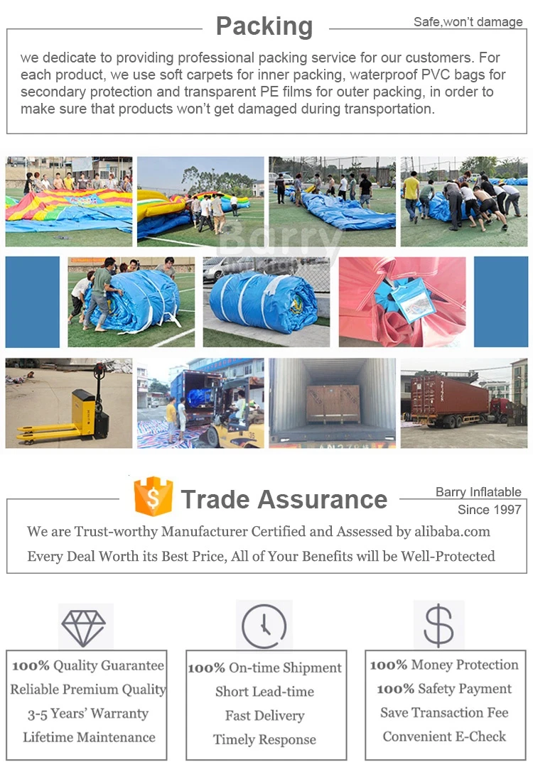 Welcome to Guangzhou Barry Industrial Co,. Ltd.Our main business are in inflatable amusement park,inflatable bounce,inflatable cartoon slide,inflatable tent,inflatable advertising,inflatable 5k,inflatable sport game,inflatable tent,air track,ect.And being full of corporation culture washed off expanding supplies.Barry upholds the "quality of survival","integrity and development" and "service as the core" business philosophies and purpose, looking forward to cooperate sincerely with customers at home and abroad to realize a win-win situation and mutual development.