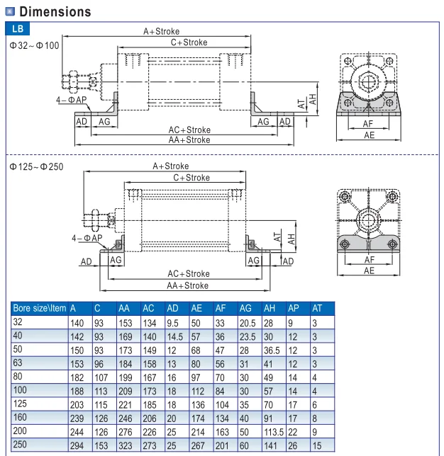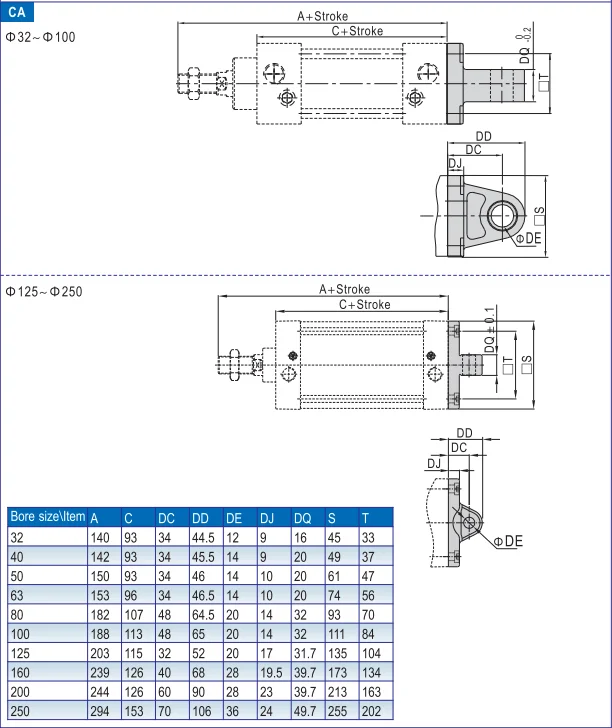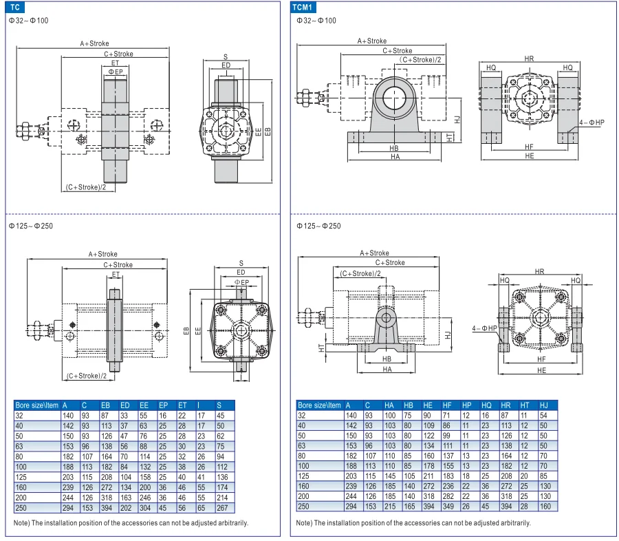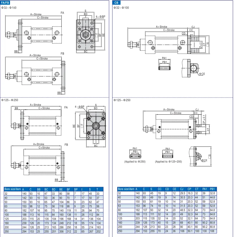 CA CB FA FB Y I LA LB TC types installed ear single double cevis pneumatic cylinder mounting parts and kits