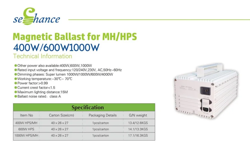 Ballasts produce a higher quality of light for plant growth. Ballasts eliminate the wear and tear on the bulb by providing a flow of electricity that starts out at a low level, then increases energy flow as the bulb warms up and achieves full brightness. And it adopts step impulse voltage startup and can adjust the working states automatically, so that it can ensure the best work of bulbs. It chooses over pressure or insufficient pressure protection function and intelligent light adjustment, enhance the safety of lighting projects.