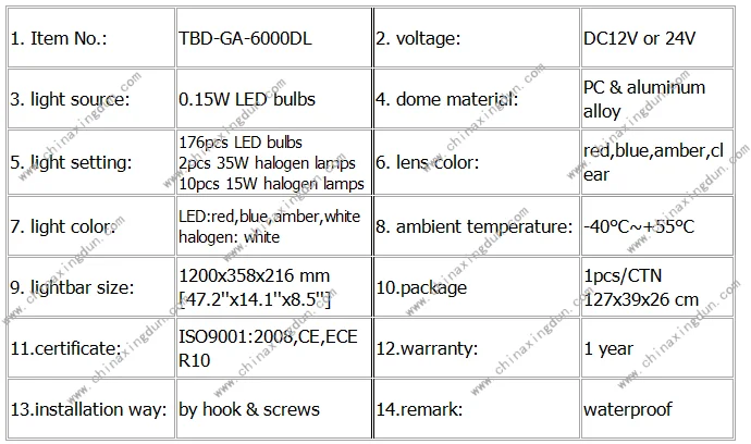 12 volt led & rotating vehicle emergency dome light bar for trucks TBD-GA-6000DL