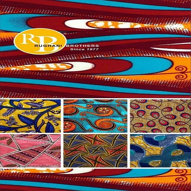 Combining striking, bold design with beautiful and bright colours, our vast selection of African prints takes inspiration from the most traditional and well-known West African Wax Print Fabric and brings together an array of traditional patterns with contemporary motifs, that are gaining popularity across Africa. At Rughani Brothers, our African Print Fabrics are produced using the best technology in Bleaching, Dyeing and Printing. Utmost care is taken while selecting the best quality of cotton to be spun into yarn, which is then woven into the best quality greige. This greige is mercerised, dyed and printed to create the best quality African Print Fabric. Our range of Wax Print fabrics display the highest quality of craftsmanship from top designers. Our in-house design studio leads the way by creating new designs and also have an archive of over 3000 designs. Our selection of wax printed fabrics combines modern styles and traditional African patterns. With designs ranging from simple and floral to bolder and brighter patterns, our African Fabric Wax Prints are not just innovative, but pleasing to the eye as well. Cut down to 6 and 12-yard measurements, the generous sizing of these pieces allows anyone who uses them to create an entire ensemble with these vibrant designs and create a unique look. Whatever your requirement, we customise our offerings to it and also provide a variety of light to heavy woven fabrics with chintz and/or matte natural finishes. We also provide value addition on printed fabrics, that is, gold foil prints, stone work, lace work and pearl look motifs on wax prints.The African Fabric Specialist