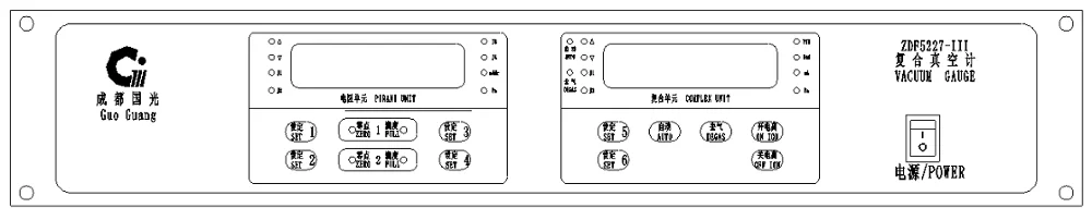 Connect the ionization gauge cable (4-core plug) with the ionization gauge socket on the back side of the device and tighten it. The other end of the cable connects with the corresponding 8-feet socket. At the same time, connect the BNC cable with the BNC socket, and the other end is connected with the collector hat or the first feet outgoing line of the vacuum gauge.