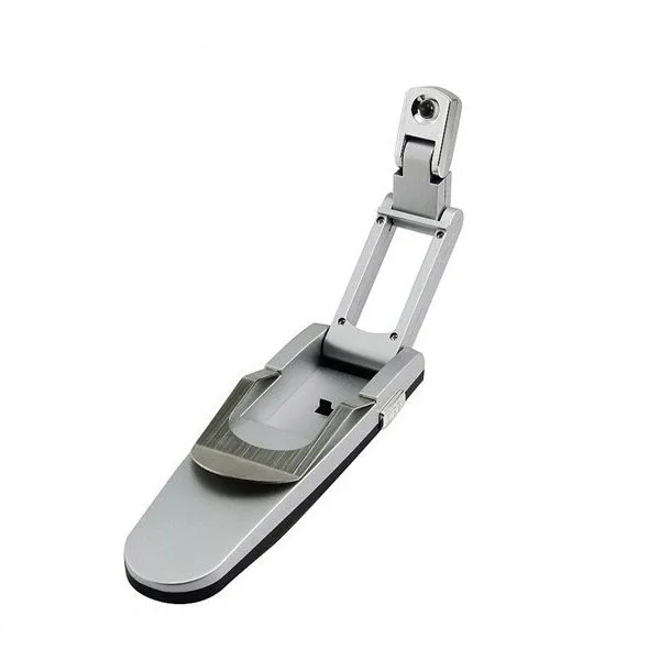 The foldable book light has a metal finish and is designed for easy use.