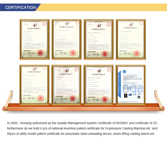 Hexiang owns more than 100 invention and utility model patents possessing independent intellectual property rights in all, got ISO9001 and CE authentication in the year of 2002. The leading products "Series Sanitary Ceramics High-pressure Casting Machine" and "Sling Lift Casting Bench for Water Closet" have won many awards on account of famous products and technical innovation.