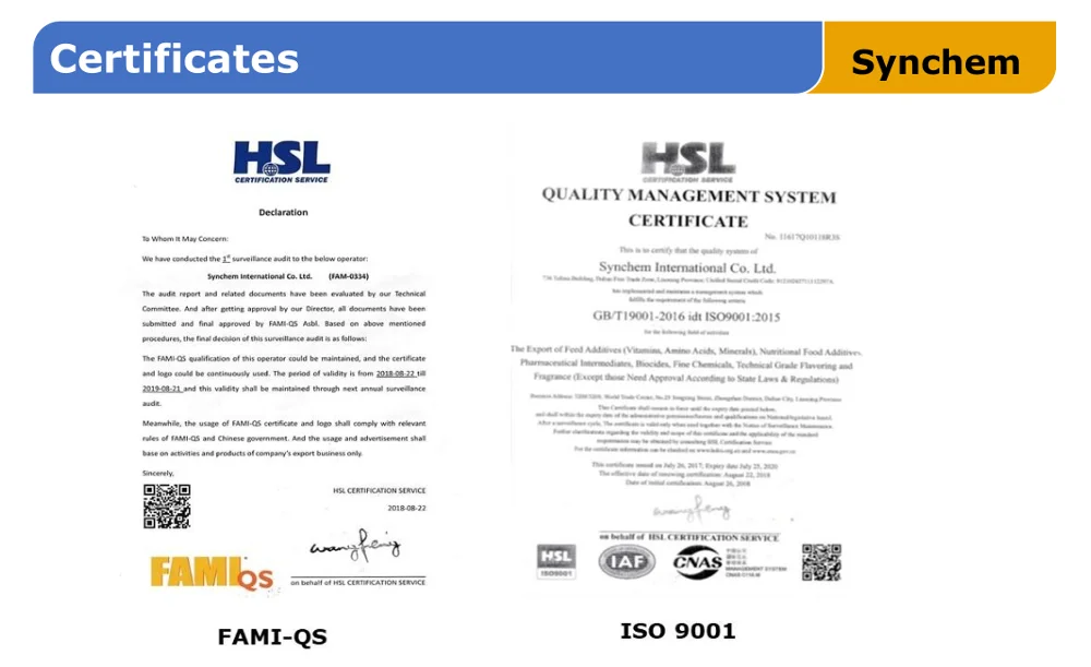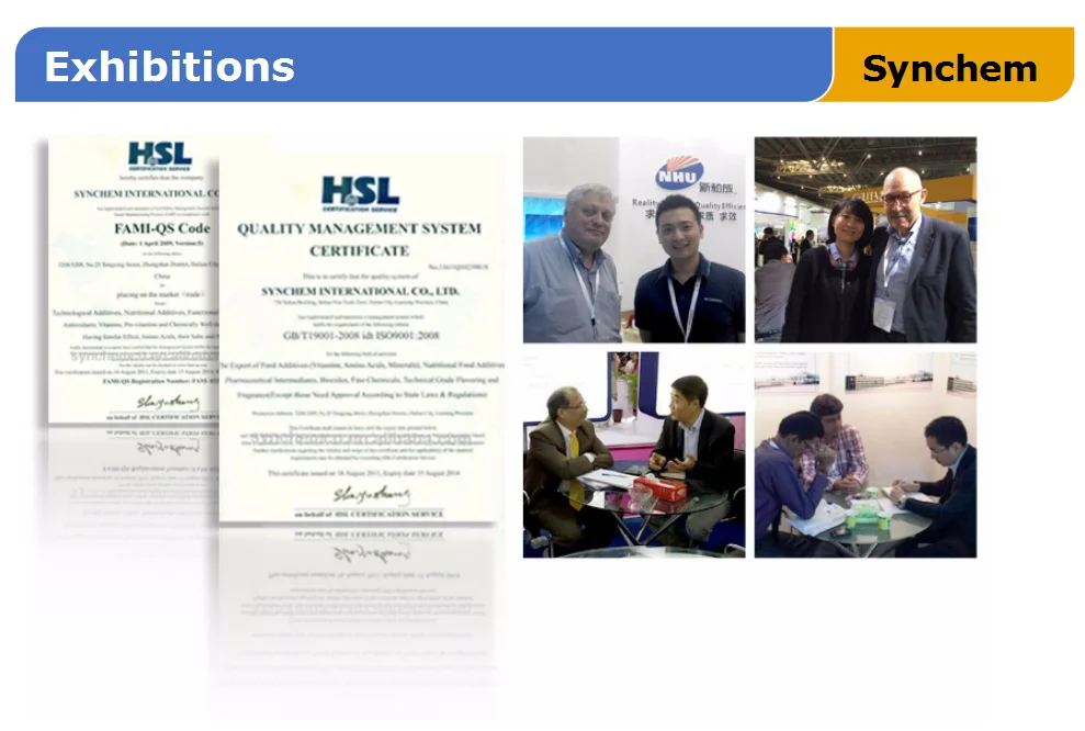 Synchem International Co., Ltd is a member of Zhejiang NHU Co. Ltd who is the largest manufacturer of vitamins, pharmaceutical intermediates, food/feed additives, etc.