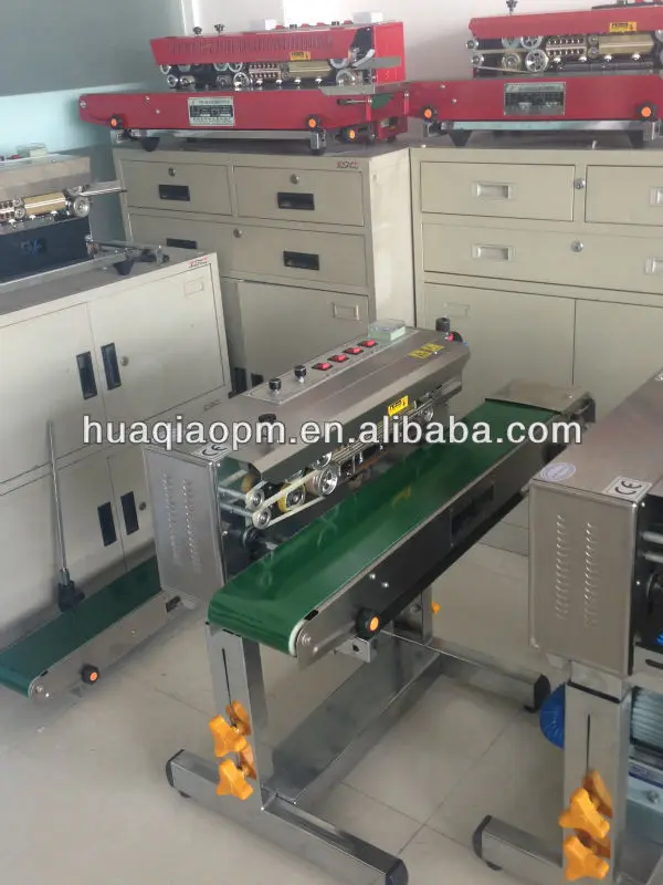 2.The series sealer is suitable for small bags packaging and adopts electrionic constant temperature control system and speed adjusting transmission mechanism. It plastic films of various materials. Such as PE, PP, Aluminumfoil, and can be fixed date embossing system.