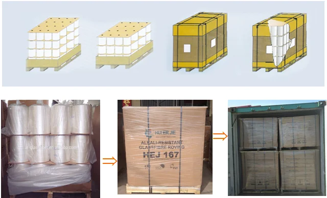 Huierjie AR Glassfibre roving pallet shall be stored dry in original packaging and advisable to stack in one layer, at a temperature between 15℃- 35℃ & relative humidity between 35%- 65%.If stored below 15℃, it is advisable to hold in workshop for 24 hours to prevent condensation before use.