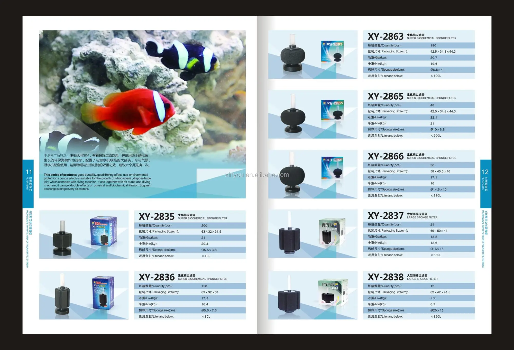 This series of products:good durability,good filtering effect,use environmental protection sponge which is suitable for the growthof nitrobacteria,Dispose large joint which connects with diving machine,If use together with air pump and diving machine,it can get double effects of physical and biochemical filtration.Suggest exchange sponge every six months.