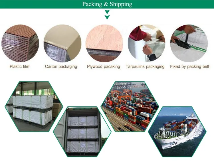 A:WPC products are much heavier than wood with the same volume. It should be placed on the flat floor for long time storage to prevent warping. We usual suggest customer to use galvanized steel pallet for WPC packing.