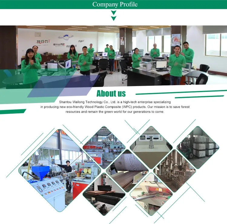 A:WPC products are environmental friendly and 100% recyclable. WPC products are anti-UV, waterproof, moisture-proof, mothproof and anti-mildew, fire resistance. WPC products has no maintenace cost, they are no need for painting and other special maintenance.