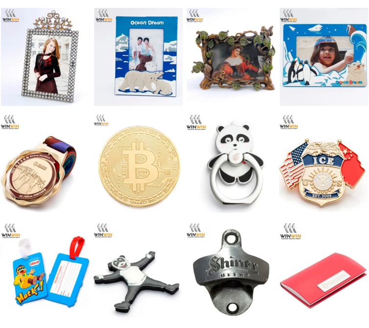 Key chain , pin badge , coin , phone ring,fridge magnet , belt buckle ,luggage tag , bottle opener ,golf divot tools , tie clip , cufflink , money clip, coaster , bookmark ,photo frame ,metal lable , mobile strap , jewelry ,mirrors and desk set etc .