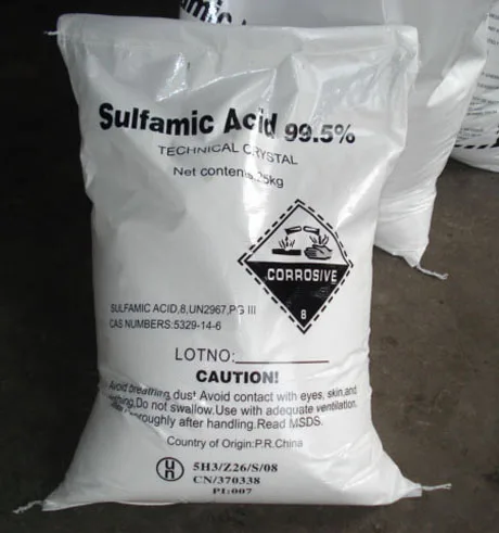 Sulphamic Acid is effective descaling agent, It is used for cleaning kinds of industrial equipment and domestic appliances. It can remove rust, limescale, corrosion. It is widely used in cleaning of metal, ceramic, and boiler compound, floor Surface, household Equipment, condenser, chemical pipelines etc.