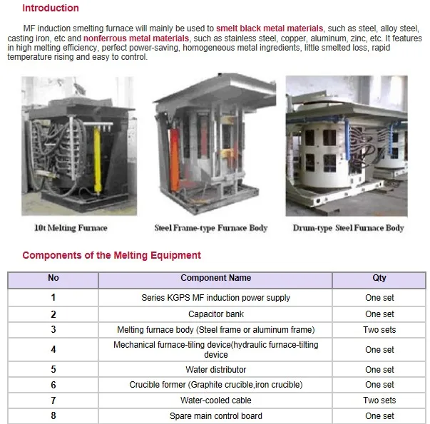 2.Features: fast speed of melting, saving energy, less burnt loss, pure molten liquid.
