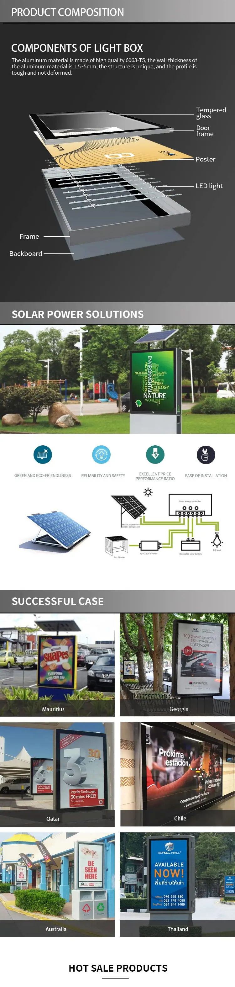A: Our main product categories include bus shelters, advertising lamp boxes, three-sided billboards, column billboards,