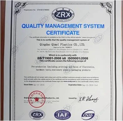 Our company has been approved by system certification of ISO9001, ISO14001 and QS in 2004. We are always adhering to "Quality first. Credit rooted. Customer first. Excellent pursued".