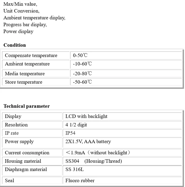 The model CWY50 digital pressure gauge is energy-saving, adopts international advanced measuring circuit, precise and reliable temperature compensation. It is also upgrading product of traditional pointer type pressure gauges.