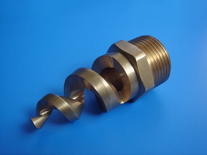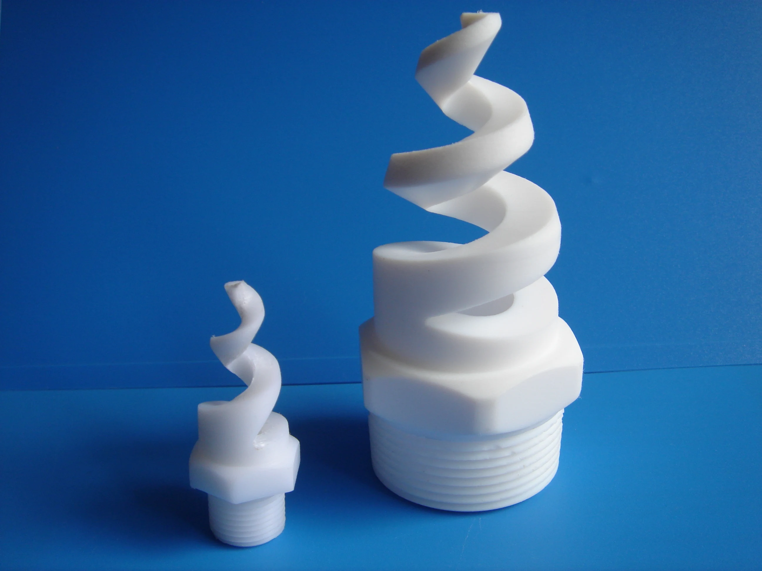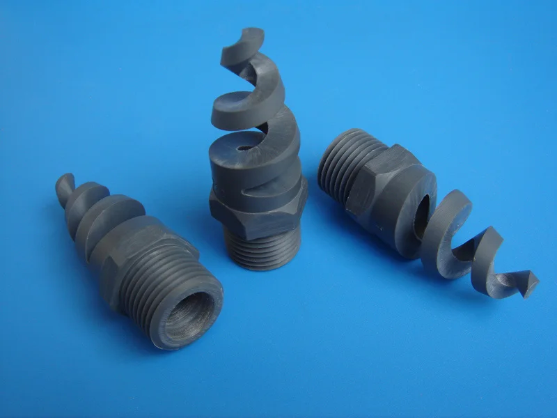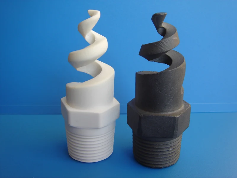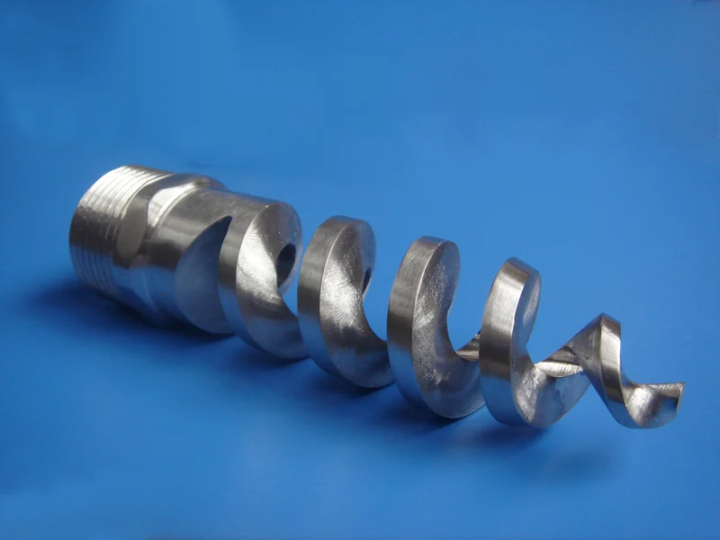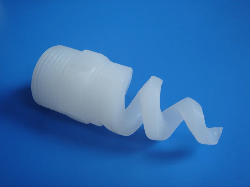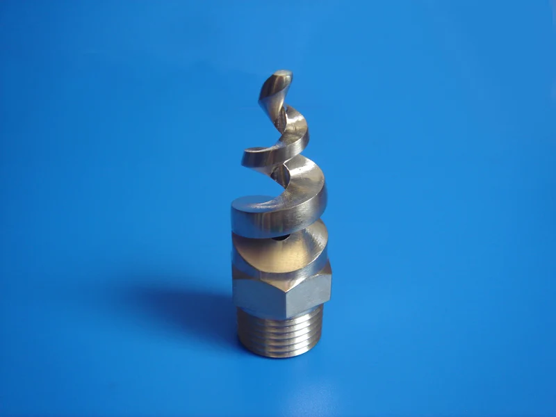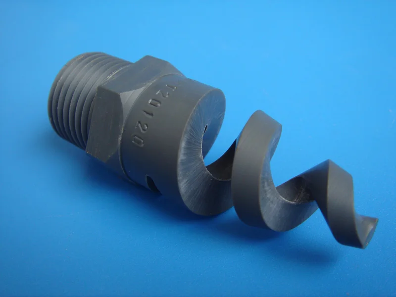 3 | What design characteristics define this type of spiral nozzle? The external spiral or “pigtail” shape distinguishes this nozzle type from others. |