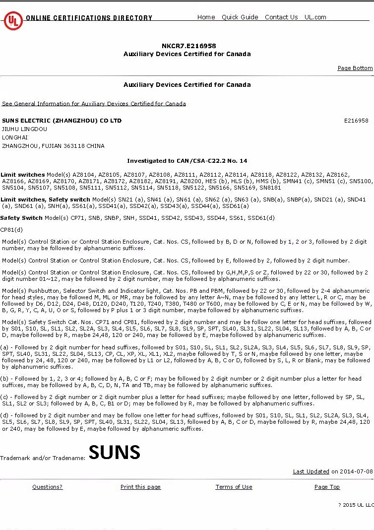 For over 25 years, SUNS has been delivering world-class electromechanical and electric components to customers around the globe. We offer n extensive line of products critical to your application. Our focus revolves around our customers receiving precise and reliable components and the most competitive price.Our manufacturing facilities are compliant under ISO9001:2008 and all of our products are certified by UL.CSA,CE and CCC standards