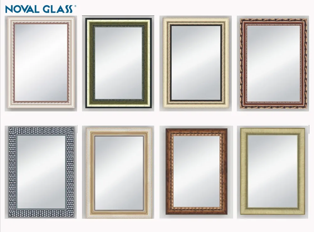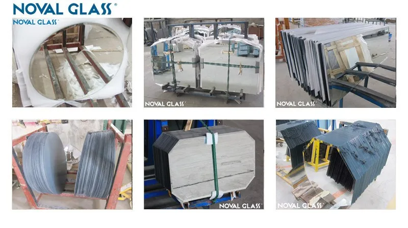 Noval bathroom mirror is made from waterproof aluminum mirror, silver mirror and copper free mirror with exact image, delicate design. Bathroom mirror can be made into beveled edge, polished edge, flat edge; V&U grooved edge, many designs print, and lots kinds of irregular shape mirror