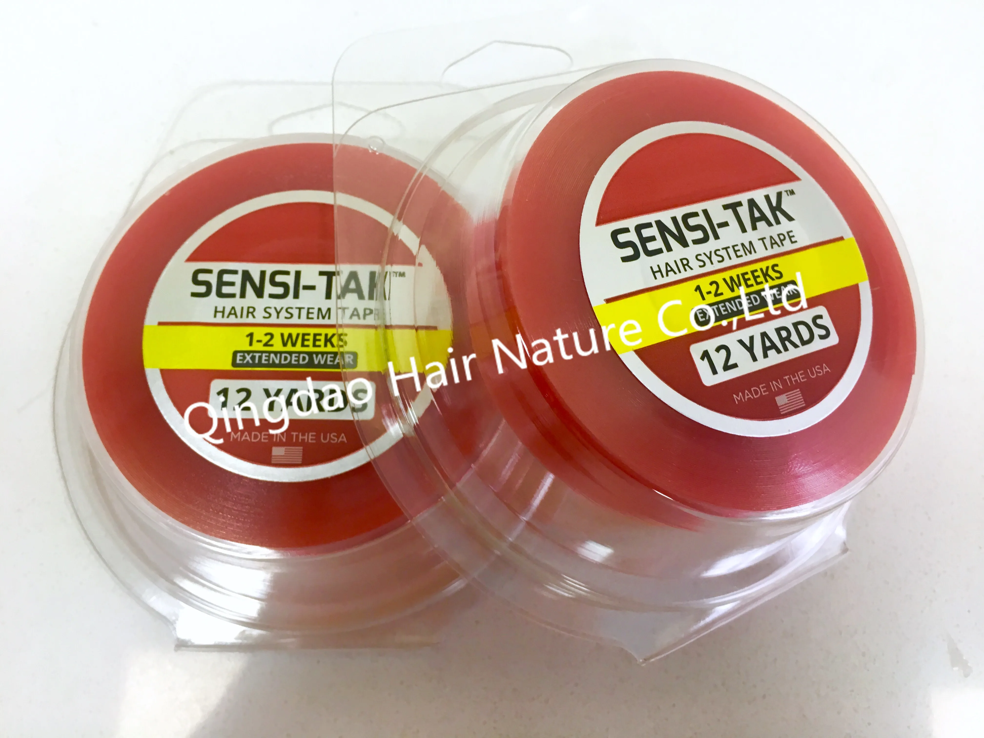 Sensi-Tak is a very low residue tape and is our cleanest tape to remove. It’s popular for use on poly units due to its easy cleanup. It does have some shine, so it’s not recommended for lace units. The liner is red, but the actual tape is clear.