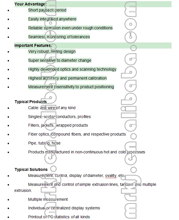 4. non-contact laser diameter measurement, high speed, high accuracy and good repeatability.