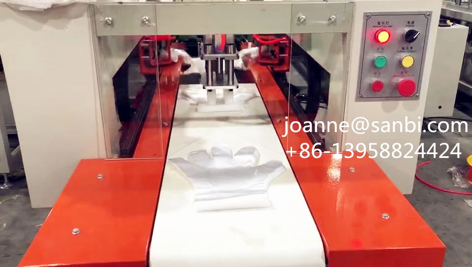 It is suitable for producing CPE,PP,OPP, HDPE and LDPE film into glove, which widely used in medical, restaurant and food filed for its convenient and healthy.