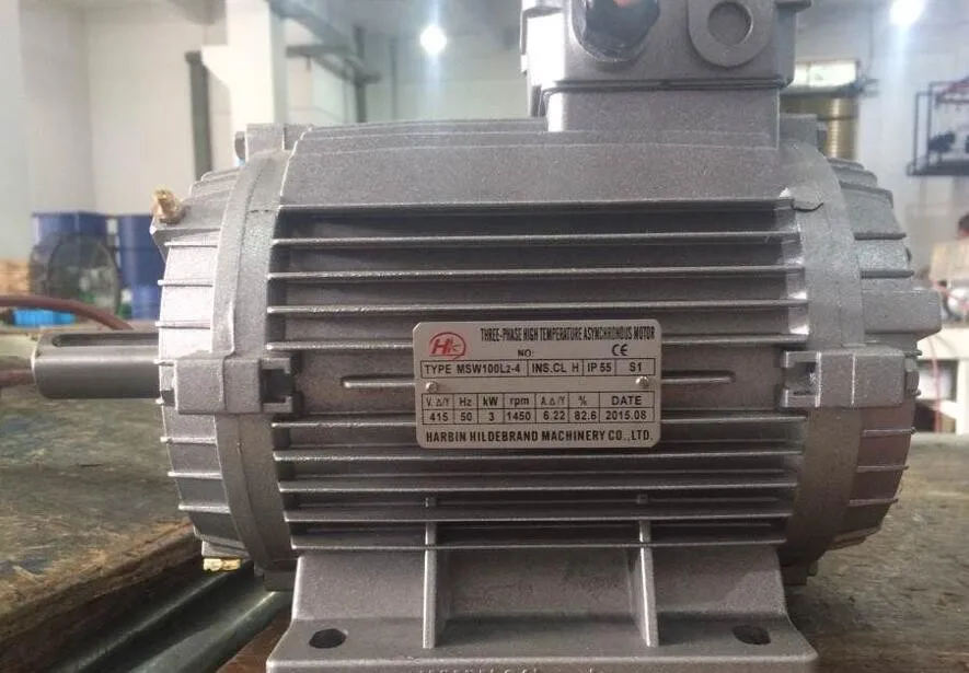 Name: High temperature motor Brand: Hidebrand Original: Germany Rated voltage (380V) Rated power (3.0KW) Rated revolutions(1426 RPM) Protection grade (IP55) Max. working temp (115℃)