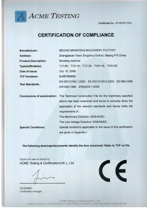 Machinery Test Report | Provided |