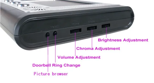 Volume, brightness and contrast adjustable.