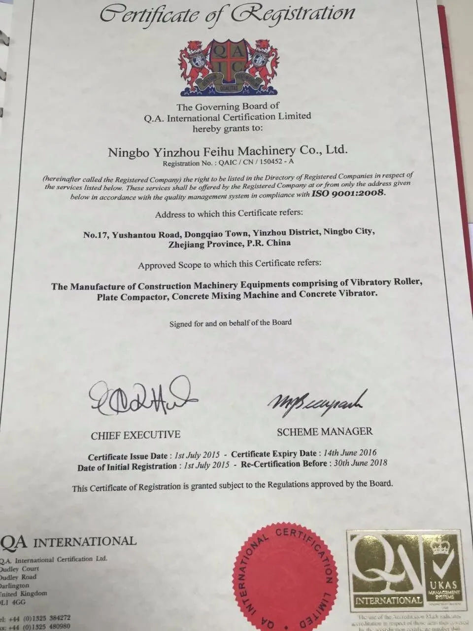 * One year spear parts and quality quarantee.