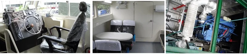The Centurion 53 is a radically designed boat with the seating of 12 passengers below deck level. The low CG of this boat with a completely covered passenger cabin is specially designed for the boat to be working off port limits and be capable of taking on rough weather. The rear cockpit is also designed to carry a total of 8 standard pallets of cargo. With a top speed of 23 knots, it has a range of 14 hours and is truly a versatile crew and mini supply vessel in rolled into one.