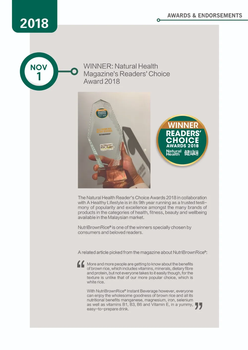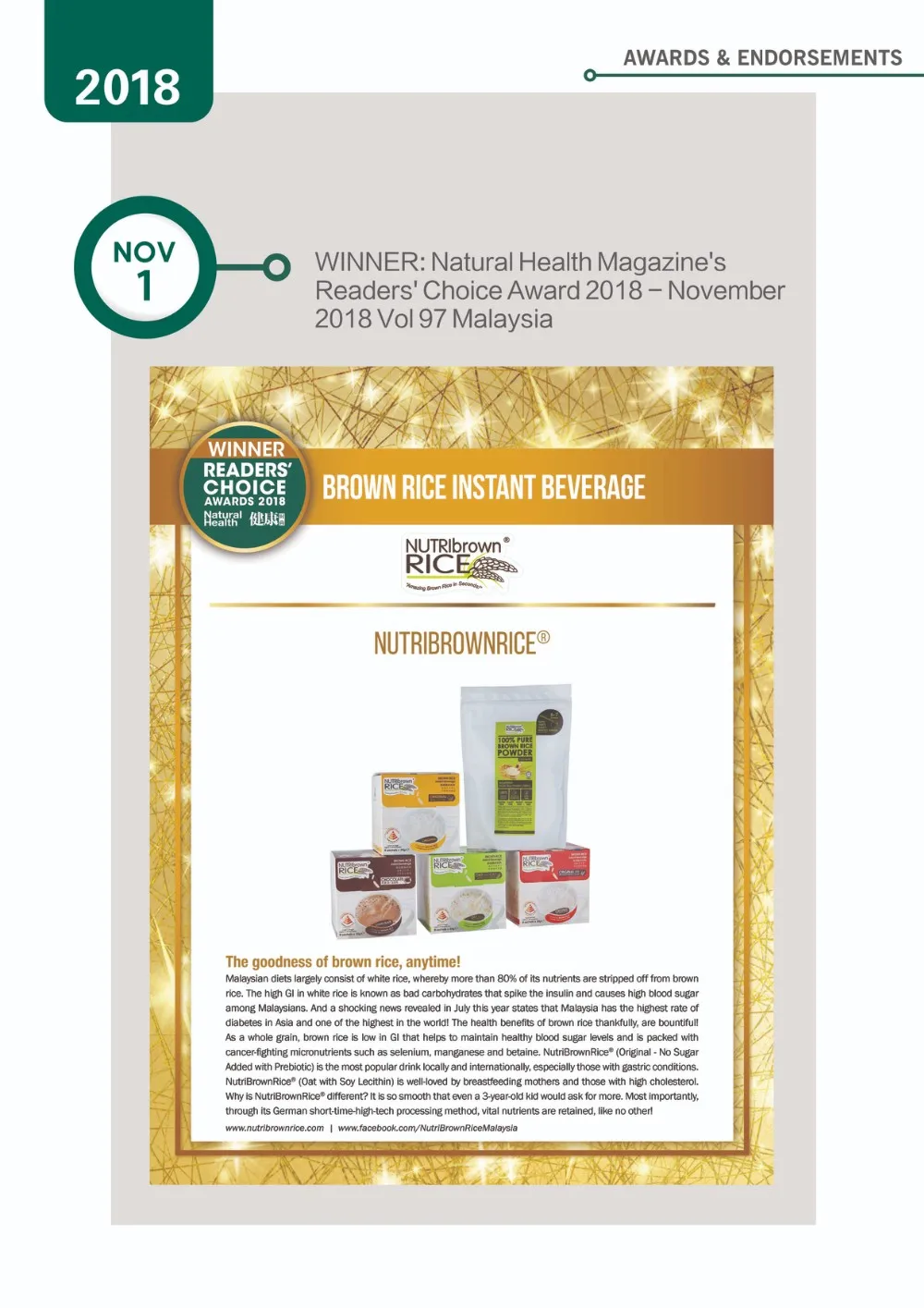 Our unique blend formula of Australian bay oats and soy lecithin is specially formulated to boost your brain by improving your focus, memory and nourish your liver. The common cause of high cholesterol, high blood sugar and high blood pressure are usually linked with poor liver function and diet problems. NutriBrownRice® (Oat with Soy Lecithin) not only offers you the health benefits of helping to lower down the bad cholesterol, blood sugar and blood pressure, it also never compromise your tastebuds, it has great taste and dissolves easily, making a healthy drinks palatable with the chewy baby oats flakes.