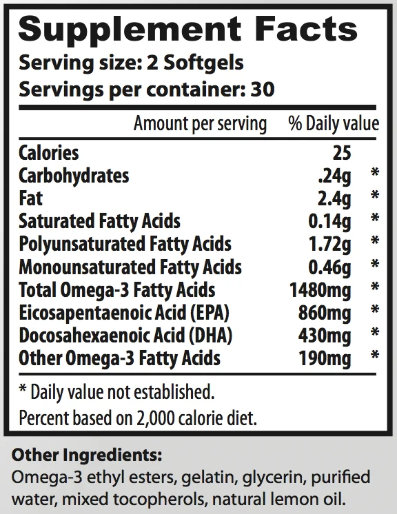 Fish Oil Omega 3 1250mg 40/30, 120 ct - Softgels