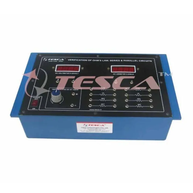 Experimental Training Board has been designed specifically for the verification of Ohm's Law & to study the series and parallel combination of Resistance network. This training board is quite useful for imparting the basic knowledge of voltage and current distribution and the effect of series parallel circuit. The board is absolutely self contained and requires no other apparatus.