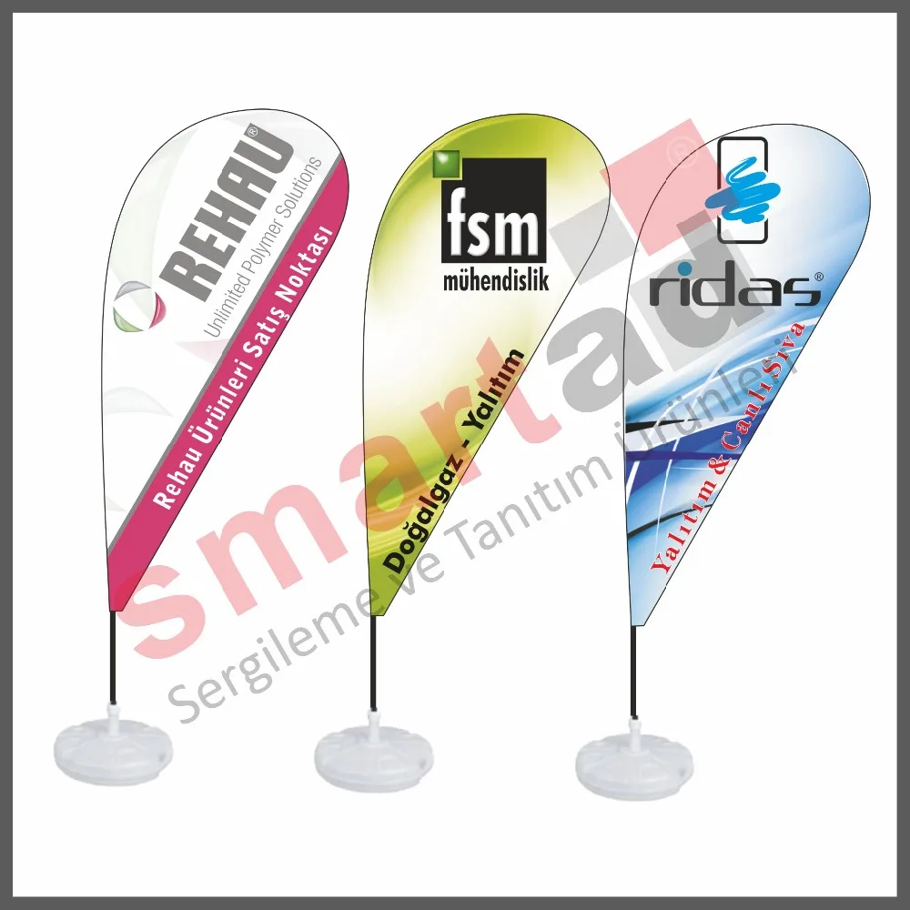 Teardrop flags are printed on 125 gr russel fabric. The flags are one coat and the print is seen on both sides with the same sharpness.