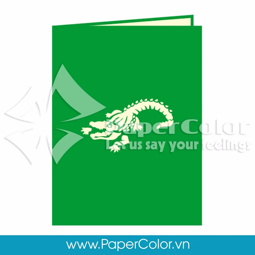 The basil cover of this 3-D Crocodile Pop Up Card features a fiery image of a crocodile.