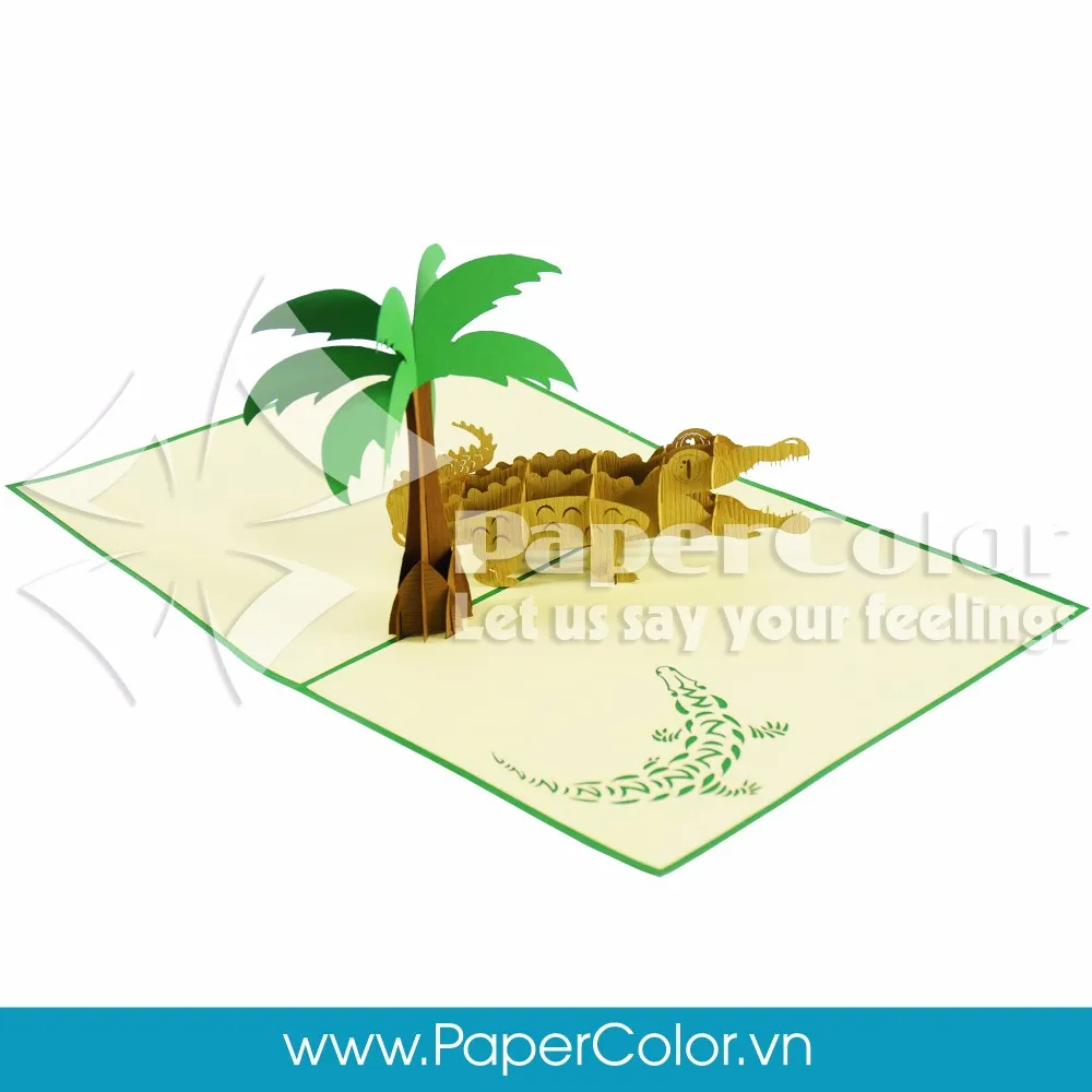 Once opened the 3-D Crocodile Pop Up Card reveals the predator with its jaw wide open showing off its sharp teeth. Unlike other Crocodile Pop Up Cards, the creature is portrayed and shaped like in real life. It is hunger for food and waiting patiently for its prey.
